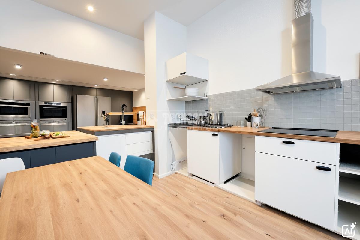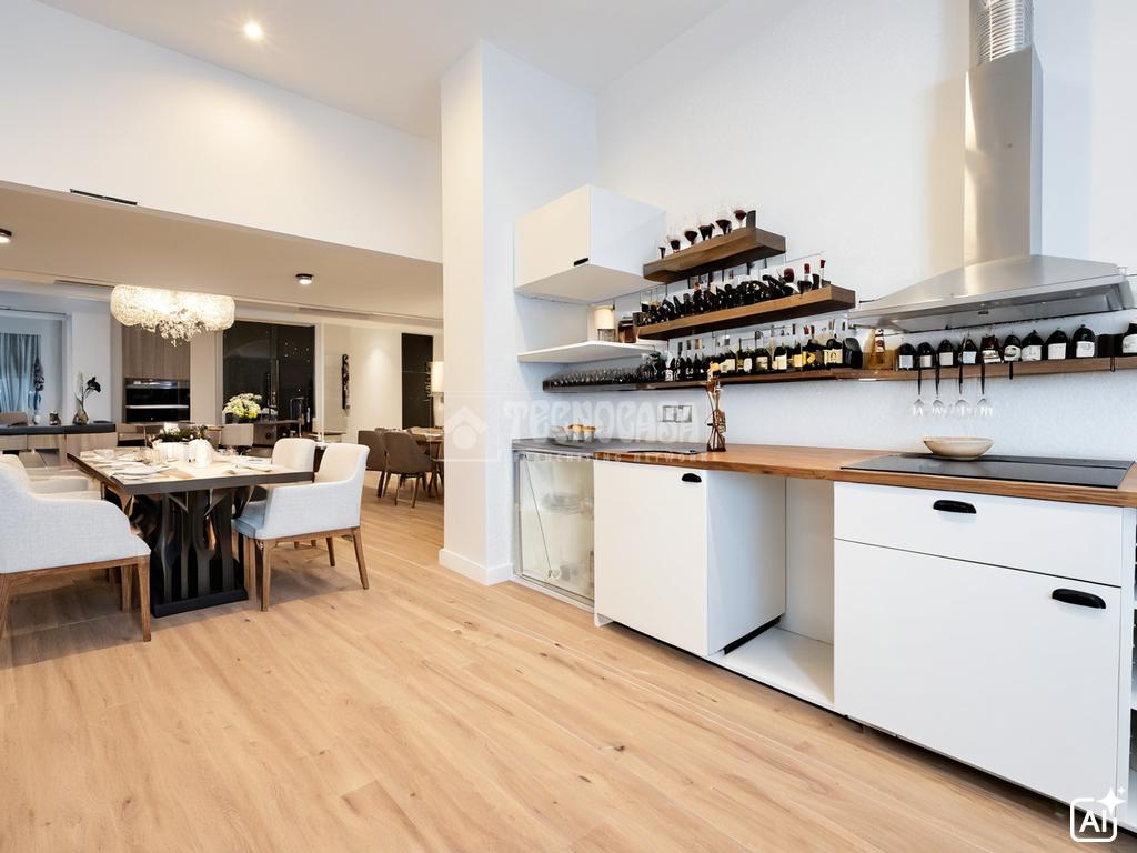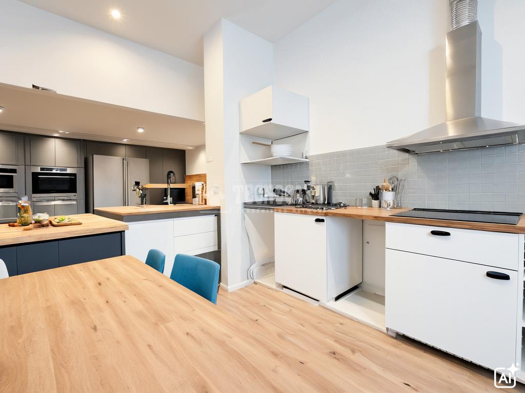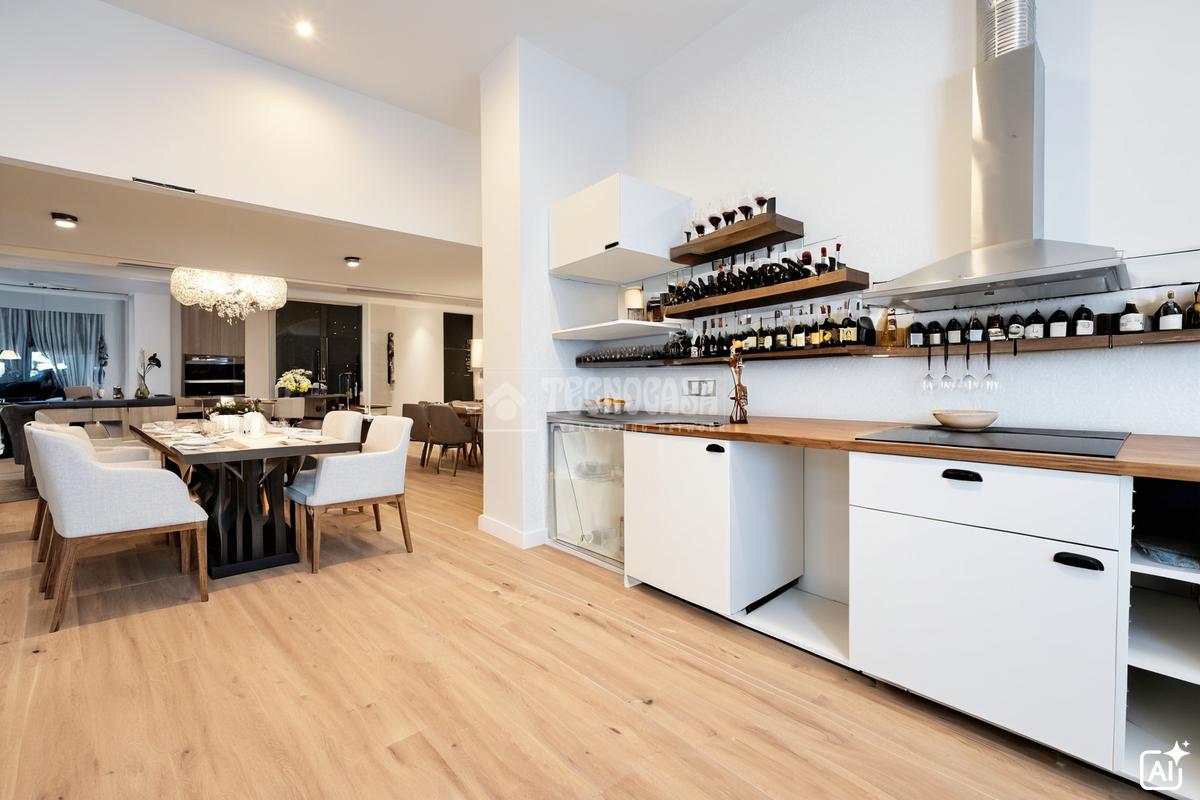 Estupenda vivienda que cuenta con salón y cocina americana con encimera de madera maciza, espacios para lavavajillas, nevera, horno y lavadora. , se entrega con vitrocerámica y campana extractora.